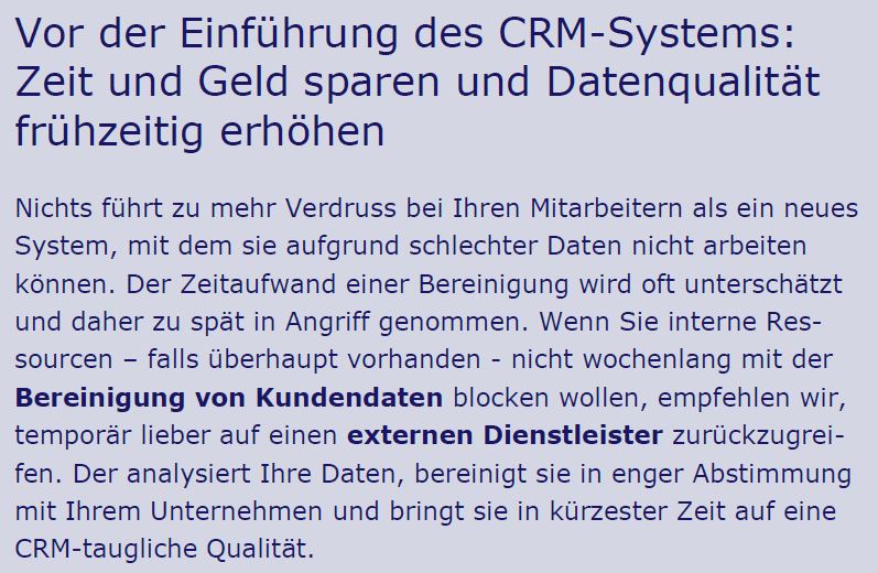 "Die Basis für eine erfolgreiche Einführung eines CRM-Systems, sind bereinigte Kundendaten
